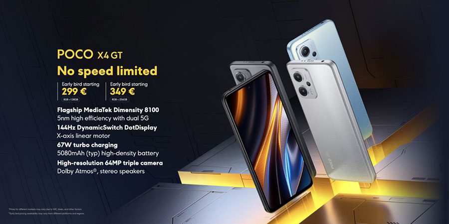 В продаже Poco X3 GT появится в ближайшие дни по первоначальной цене €299 и €399 за версии 8/128 Гб и 8/256 Гб, но позднее цена будет выше. Расцветки три — черная, светло-серая и голубая.